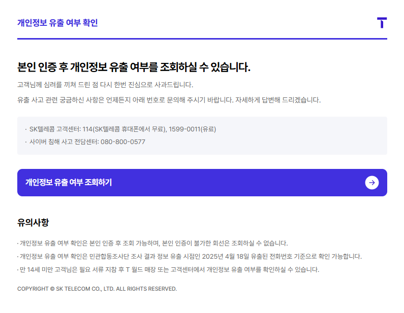SKT 개인정보 유출 여부 확인 방법, 이대로 따라 하세요!
